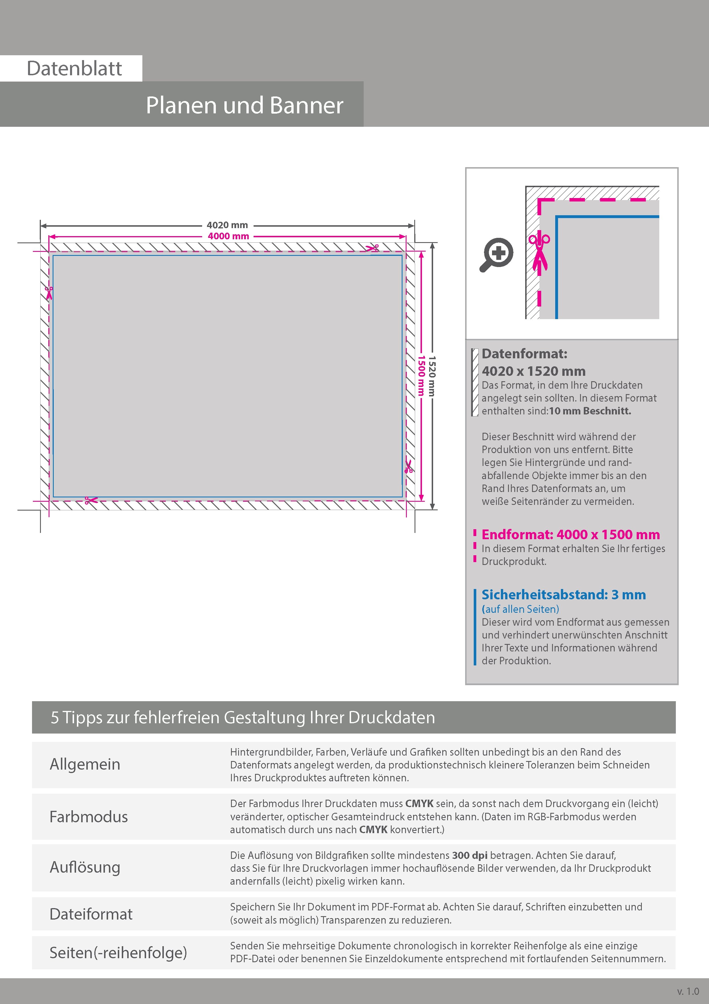 Hochwertige Stoff-Banner 400 x 150 cm, 4/0-farbig bedruckt, plano