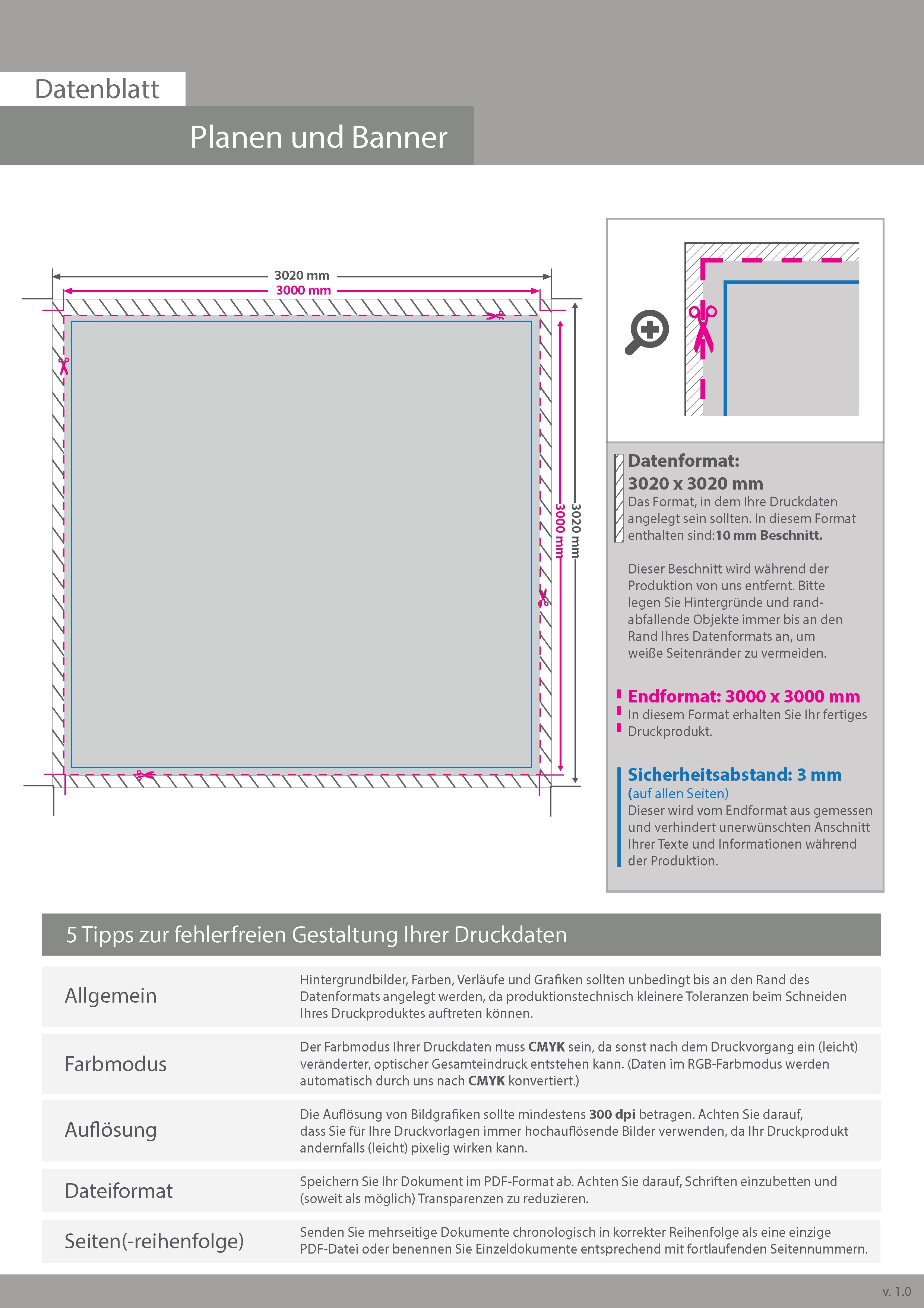 Hochwertige Stoff-Banner 300 x 300 cm, 4/0-farbig bedruckt, plano