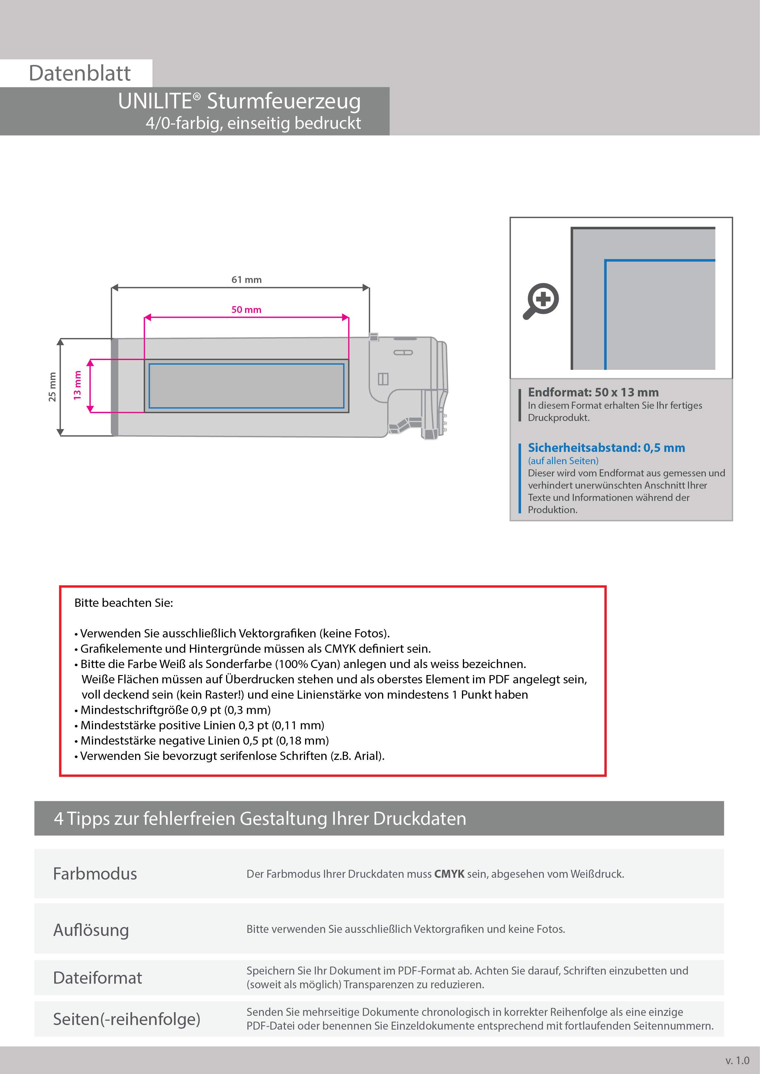 unilite®-Sturmfeuerzeug, 4/0-farbig einseitig bedruckt