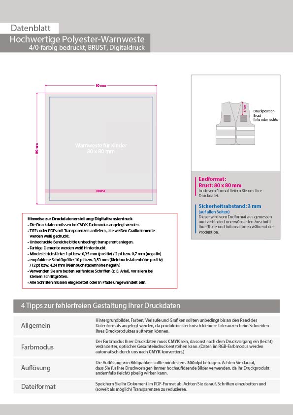 Hochwertige Polyester-Warnweste, 4/0-farbig bedruckt, BRUST